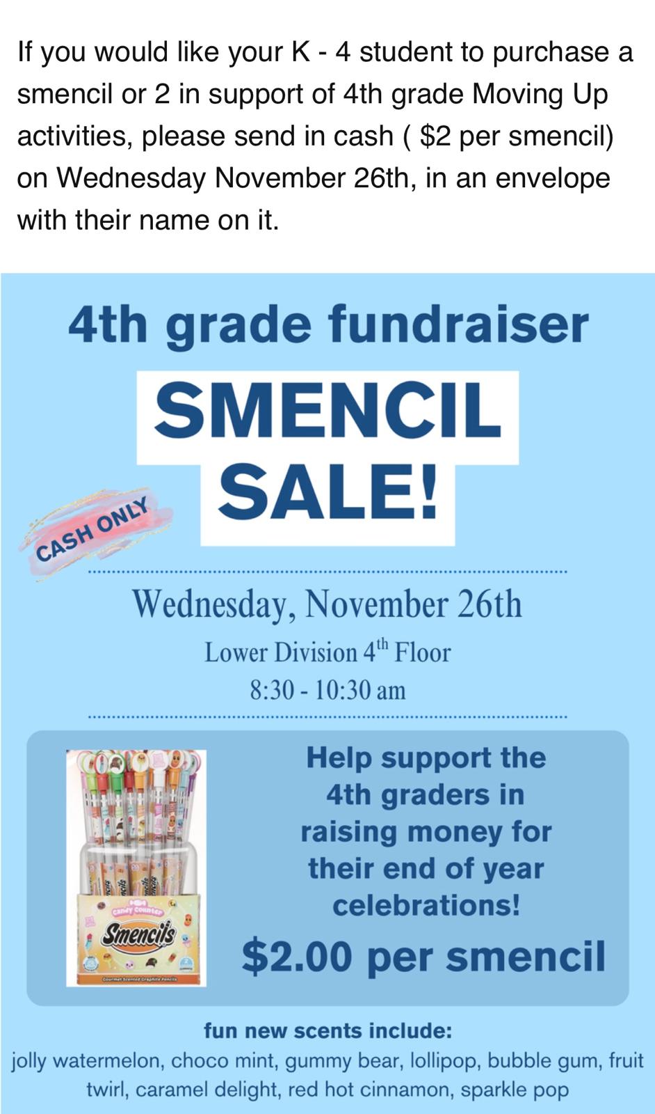 4th Grade Fundraiser: Smencil Sale 2025 (11/26/2025)