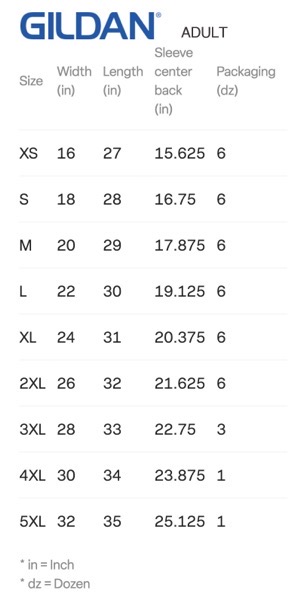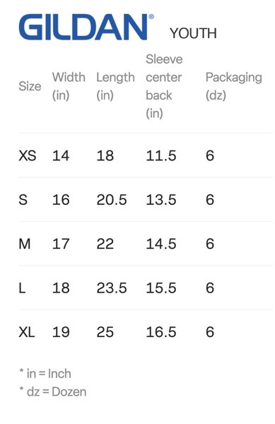 - Sizes: Youth S – XL and Adult XS – 5XL